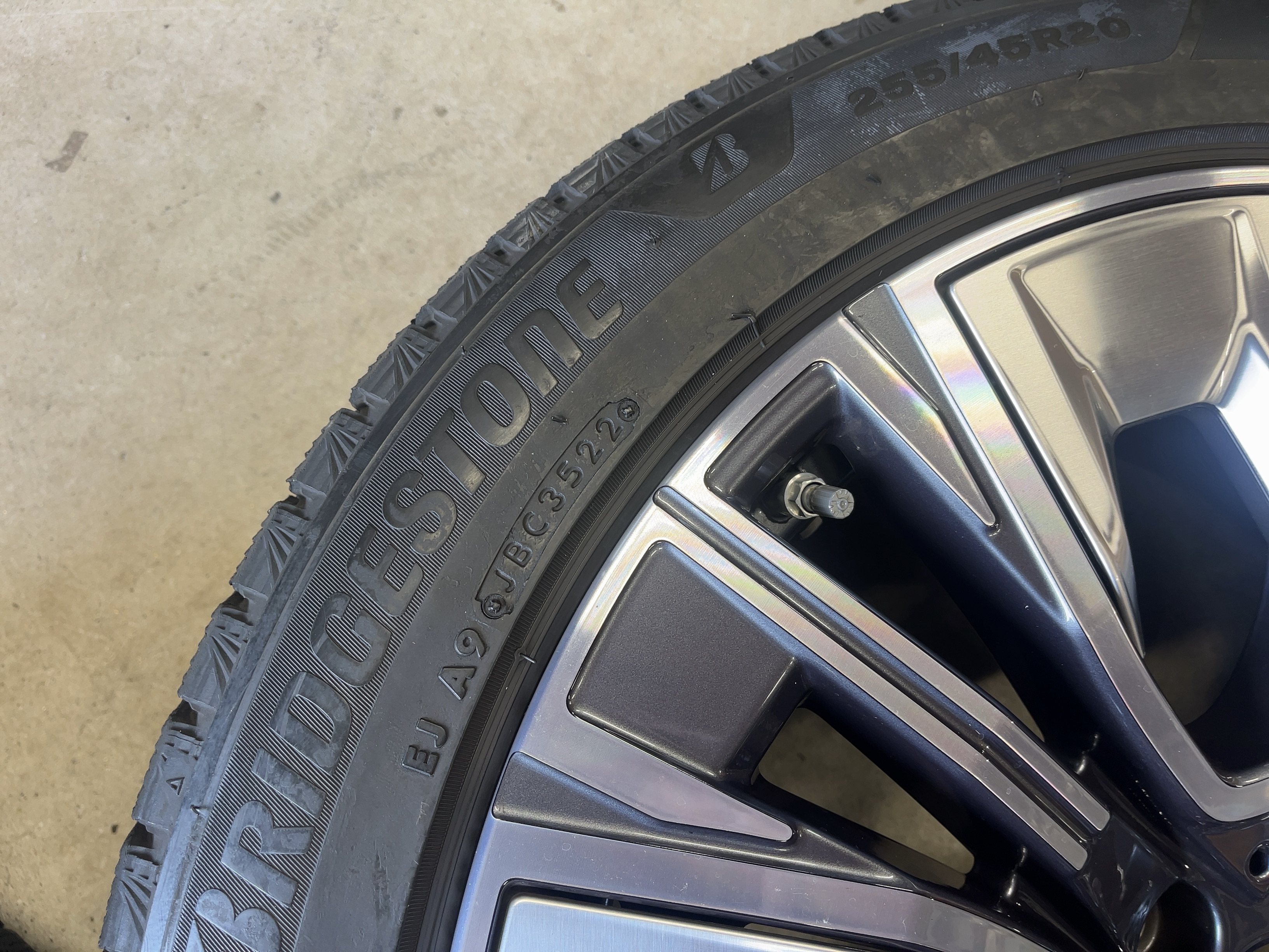| アルミサイズ | ホイル 9J×20 オフセット+24 10.5J×20 オフセット+44 PCD 112 ハブ径 66.6 タイヤ BS ブリザック VRX3 255/45/20 285/40/20 7部山 2023年製 |