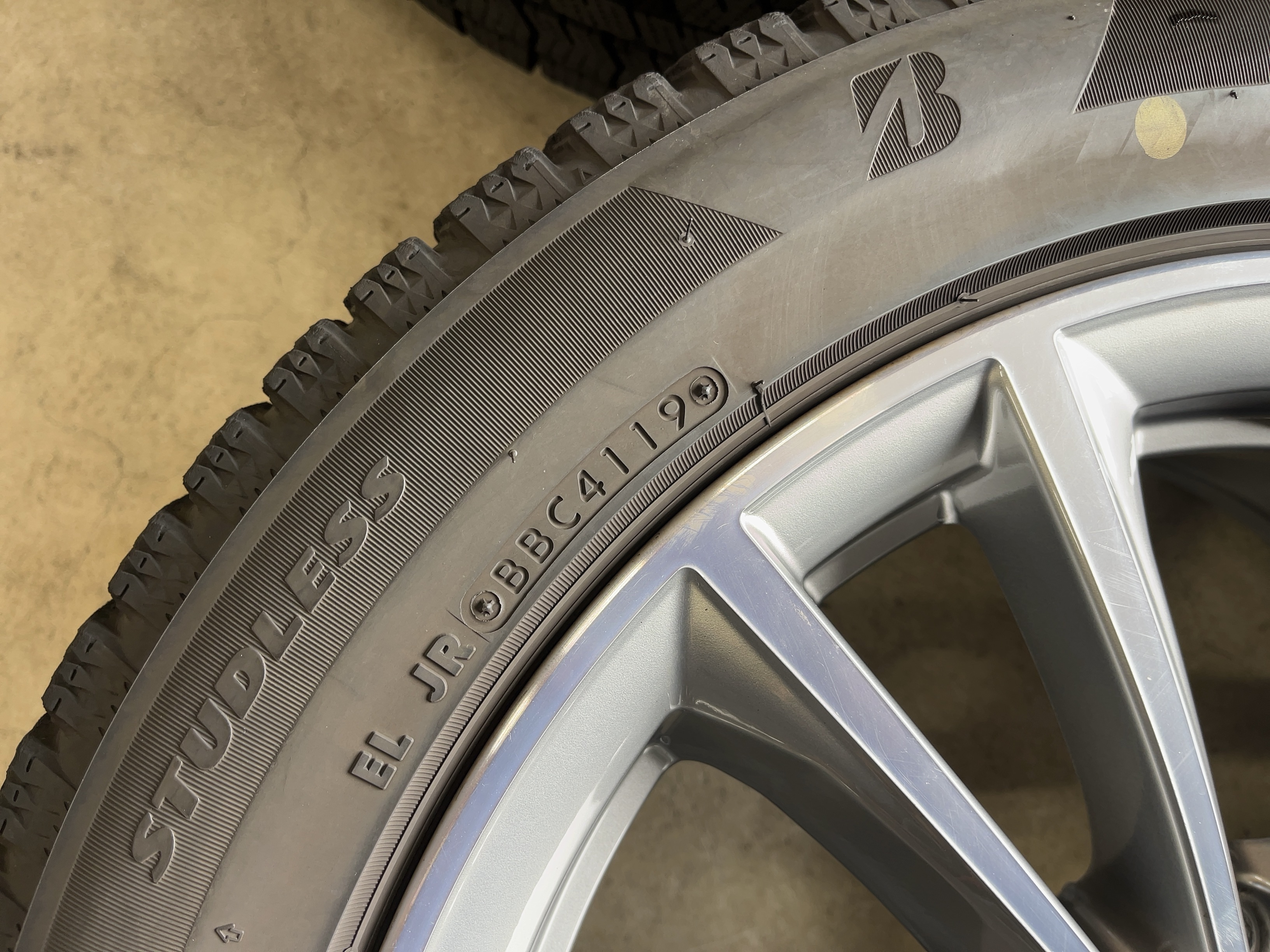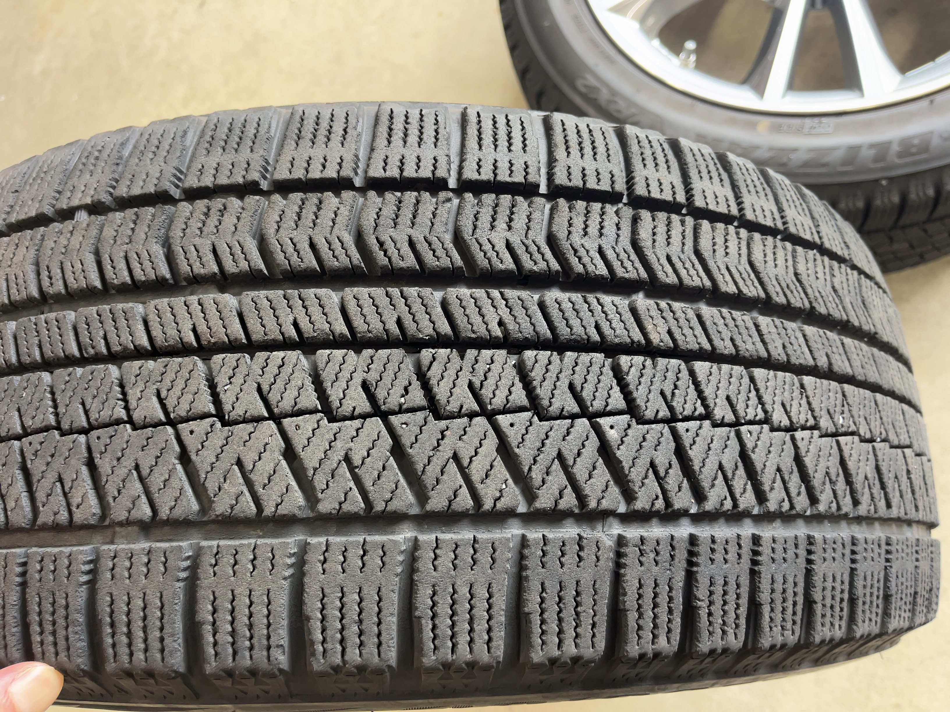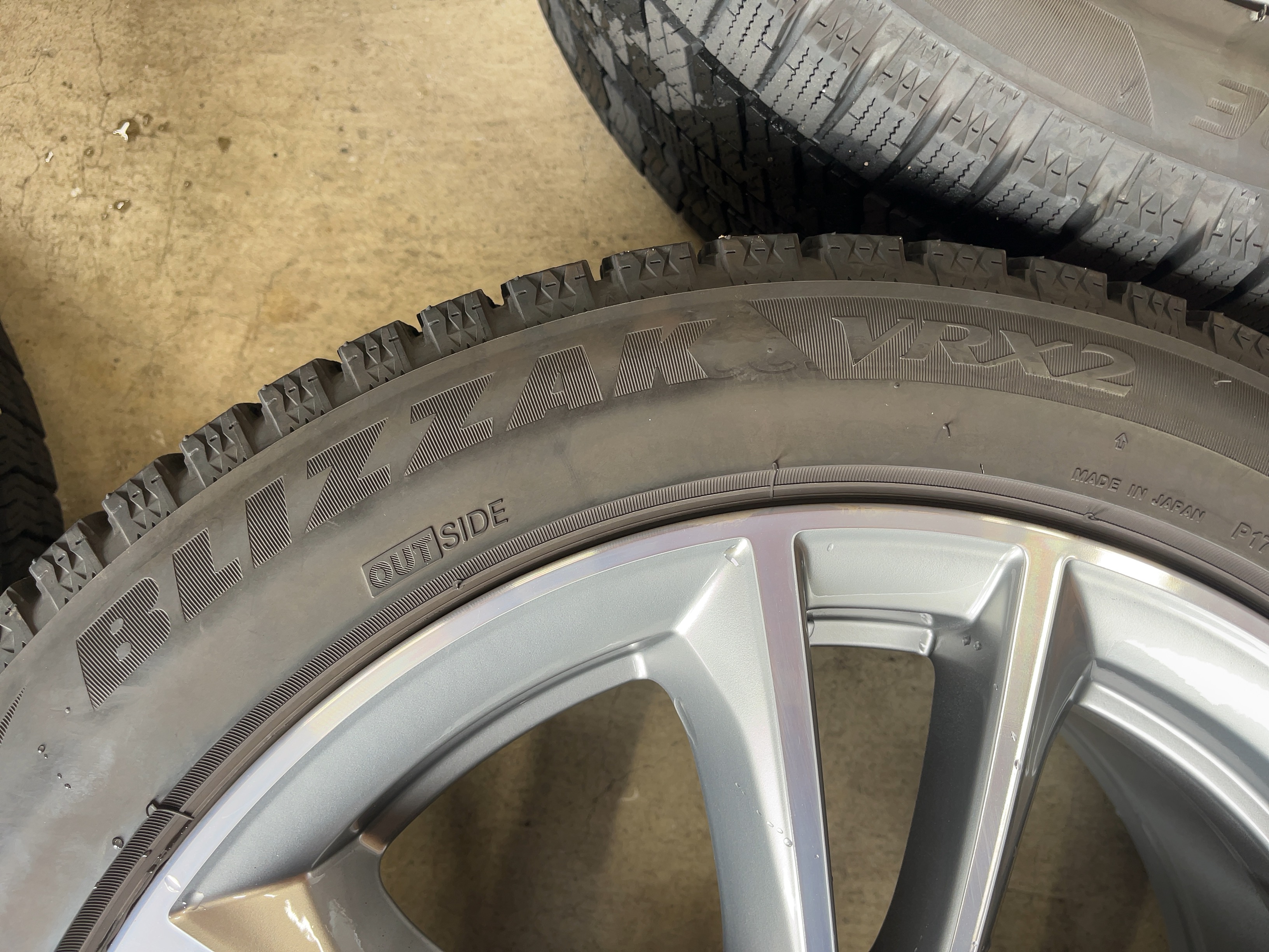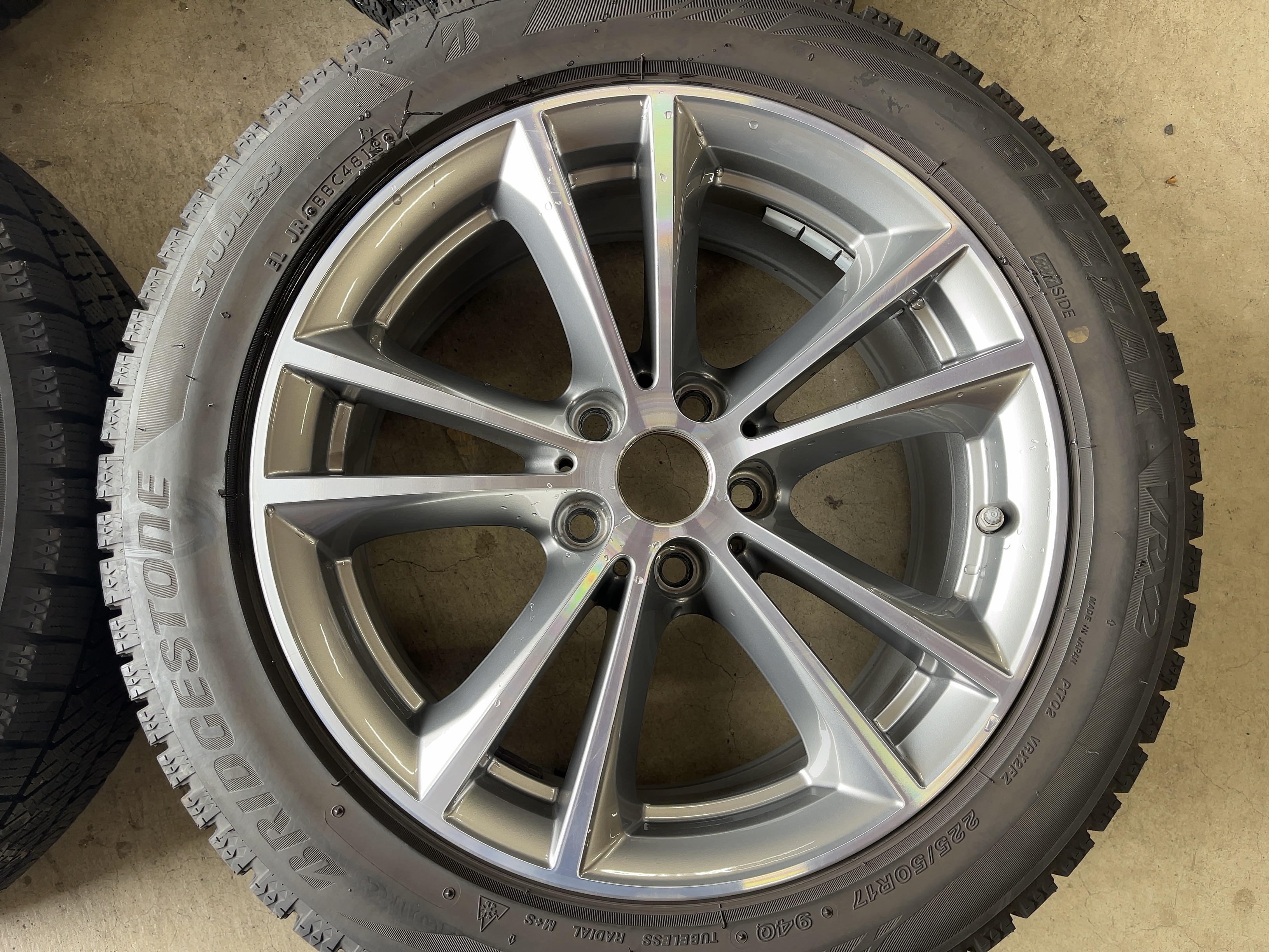 | アルミサイズ | ホイル 7.5J×17 オフセット+27 PCD 112 ハブ径 66.6 タイヤ BS ブリザック VRX2 225/50/17 4部山 2019年製 |