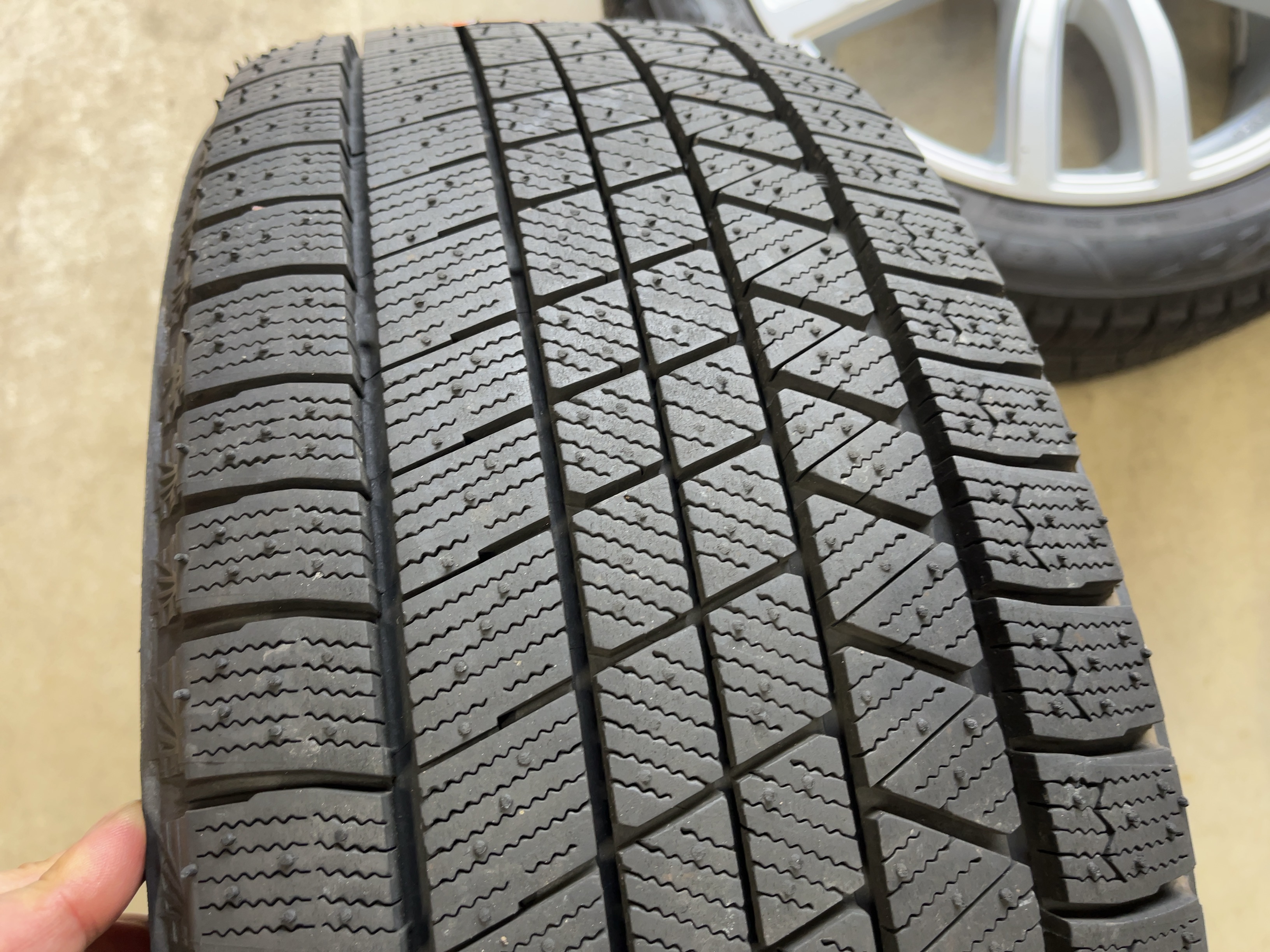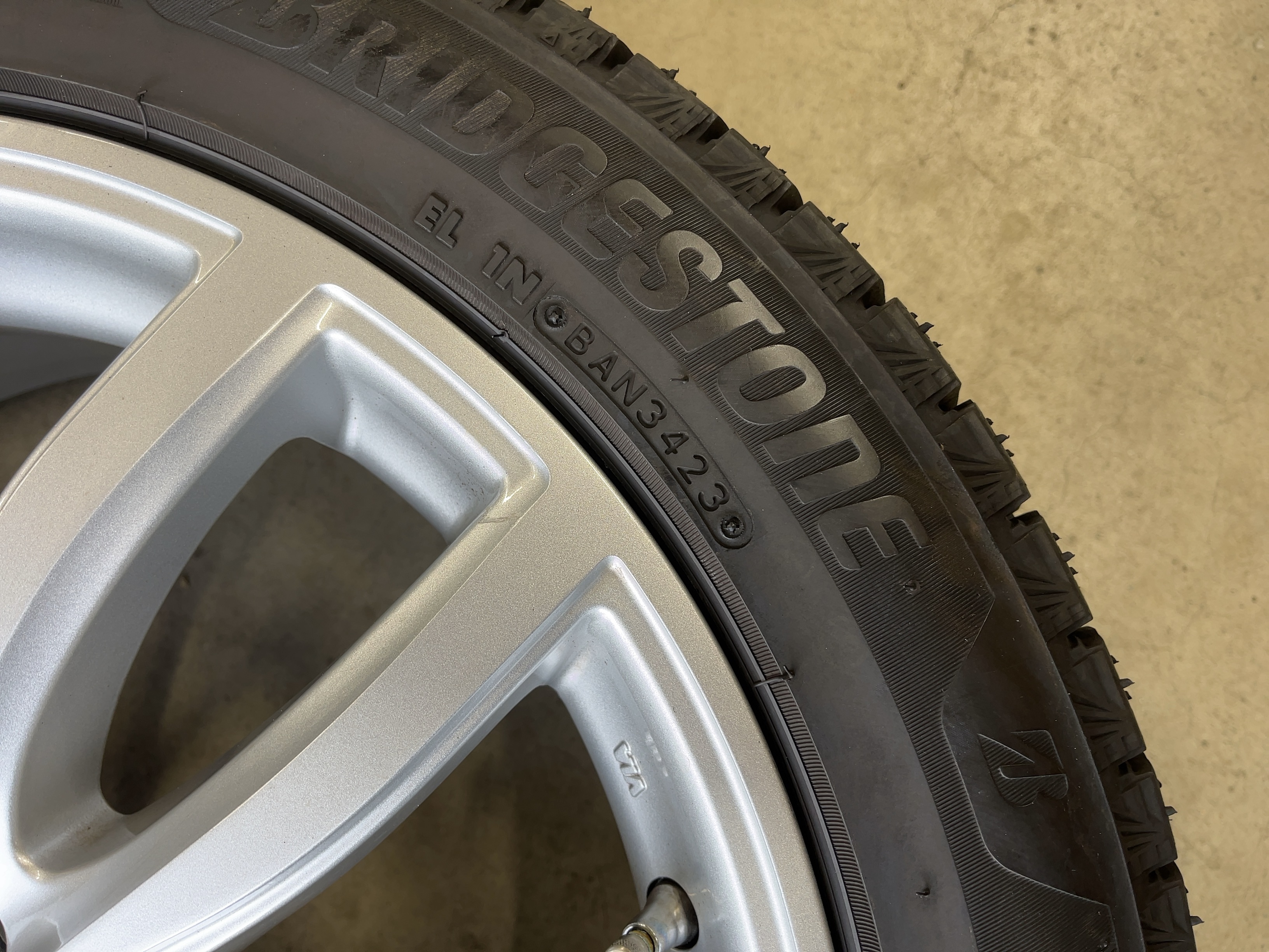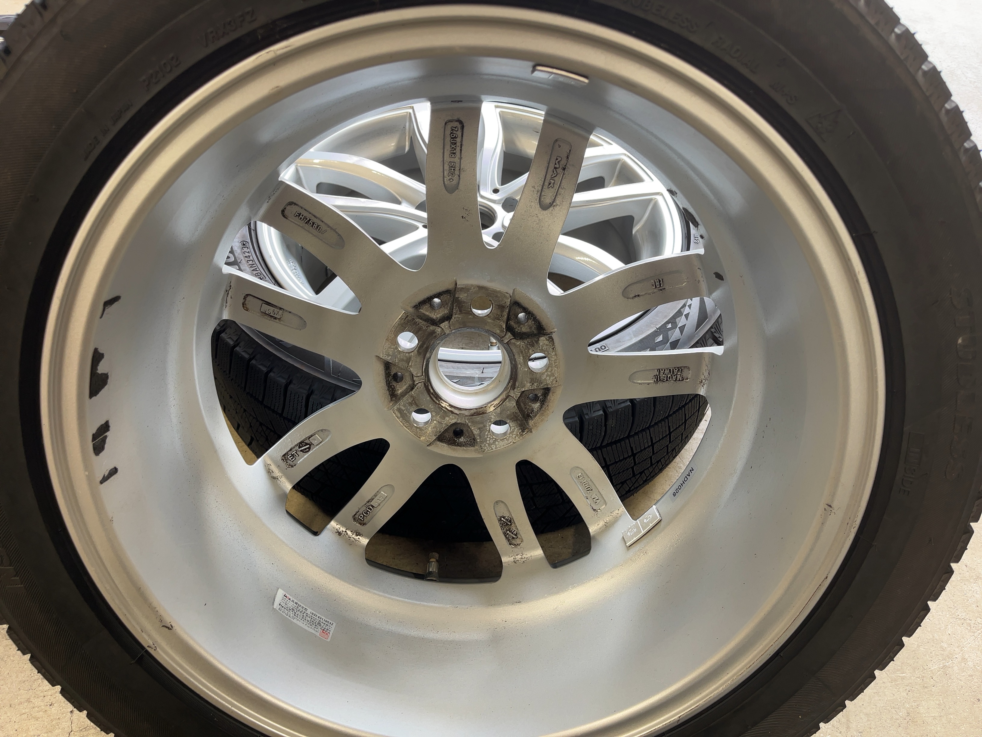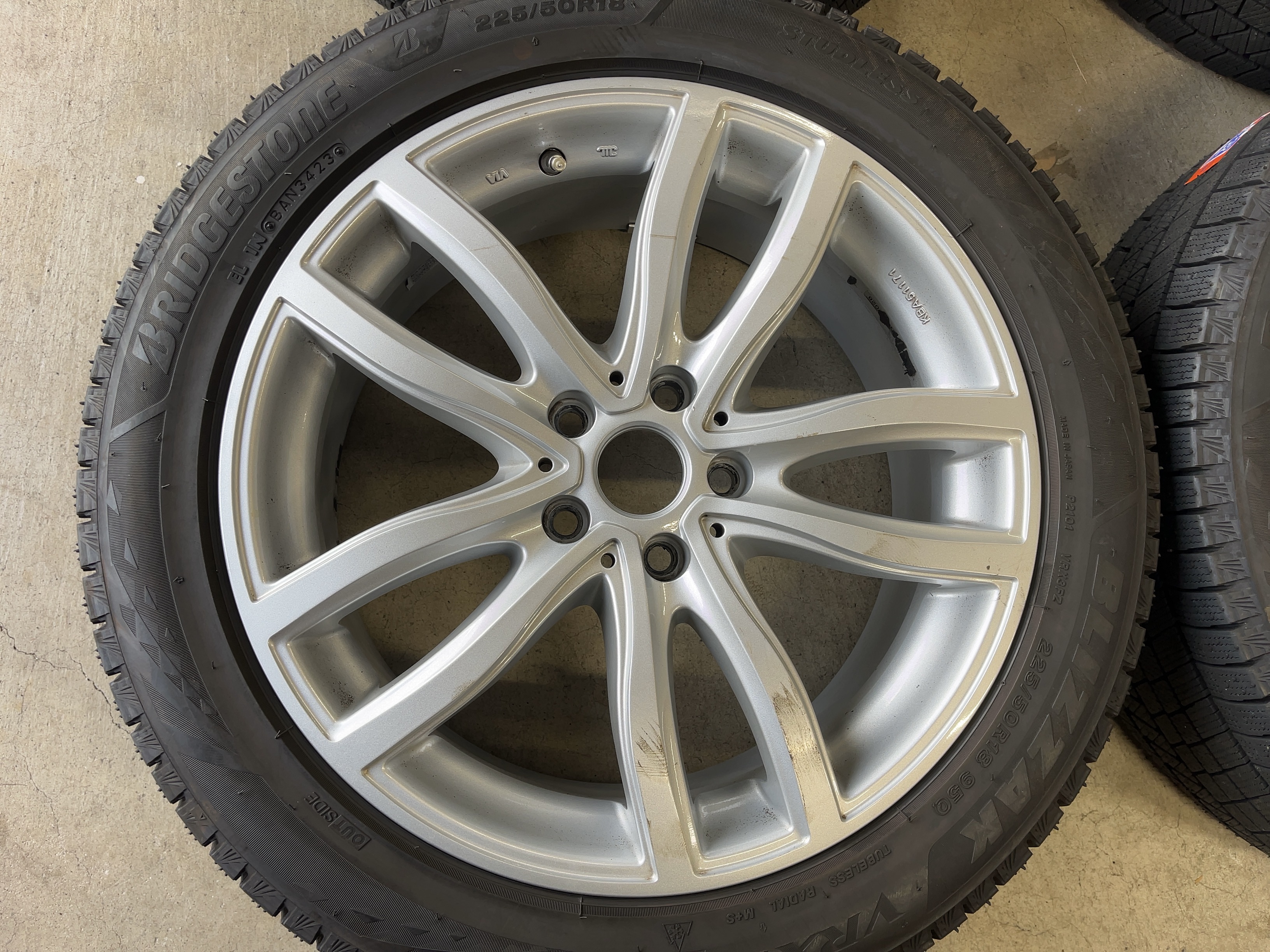| アルミサイズ | ホイル 7.5J×18 オフセット+51 PCD 112 ハブ径 66.6 タイヤ BS ブリザック VRX3 225/50/18 9部山 2023年製 |