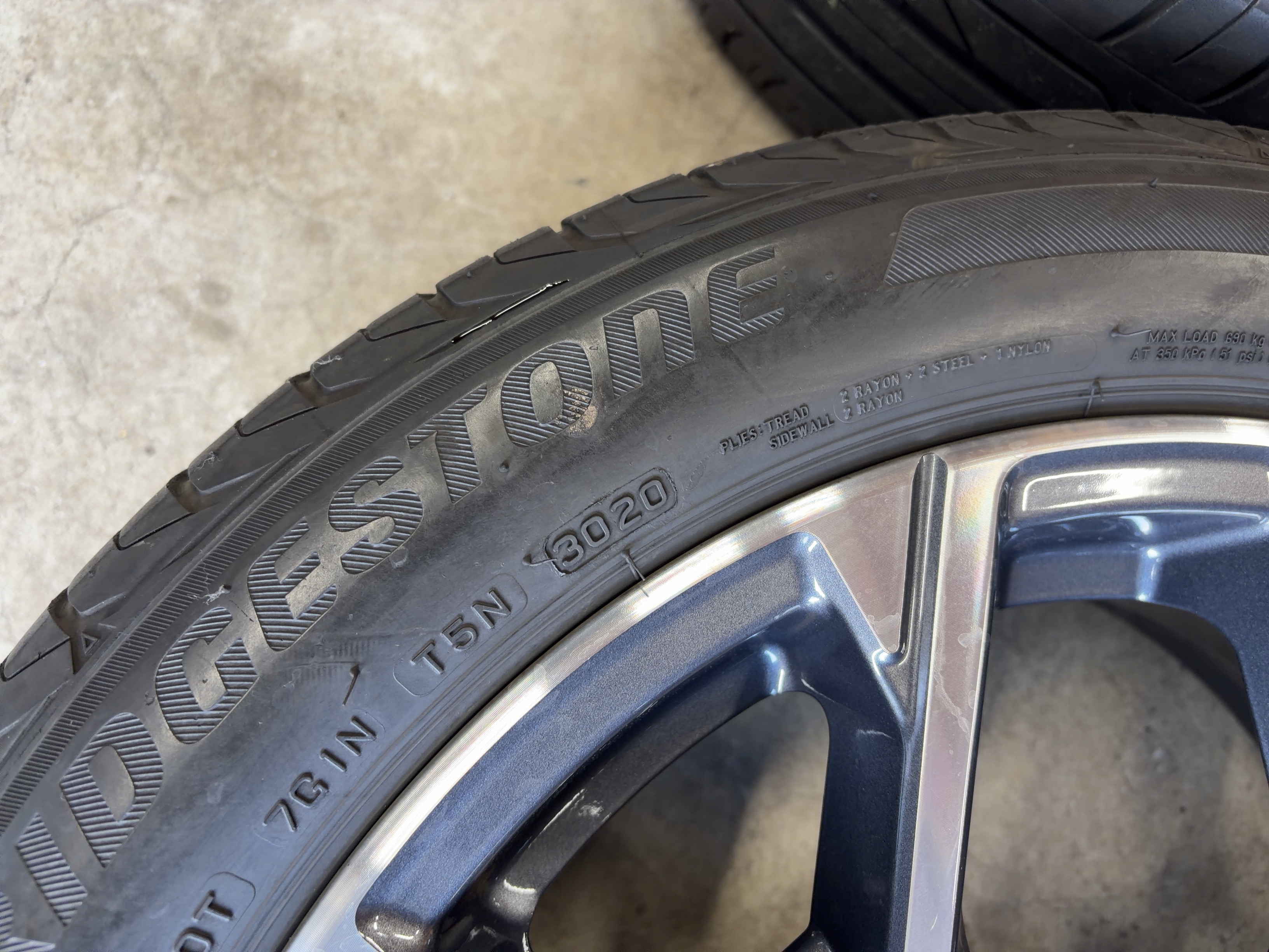 | アルミサイズ | ホイル 7.5J×18 オフセット+51 PCD 112 ハブ径 66.6 タイヤ BS T001 ランフラット 225/50/18 5部山 2020年製 |