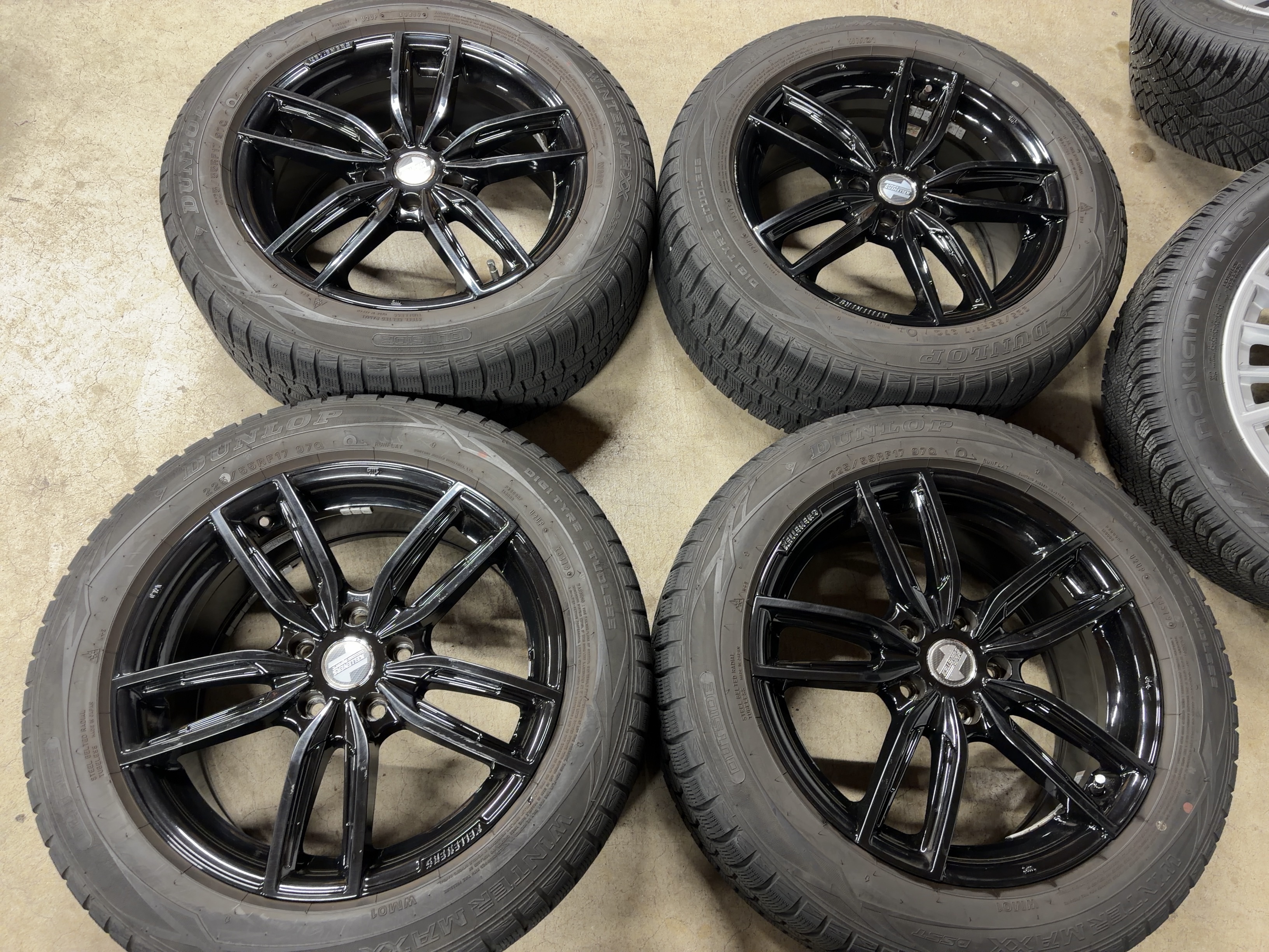 | アルミサイズ | ホイル 7.5J×17 オフセット+52 PCD 112 ハブ径 66.6 タイヤ ダンロップ ウインターマックス01 ランフラット 225/55/17 6部山前後 |