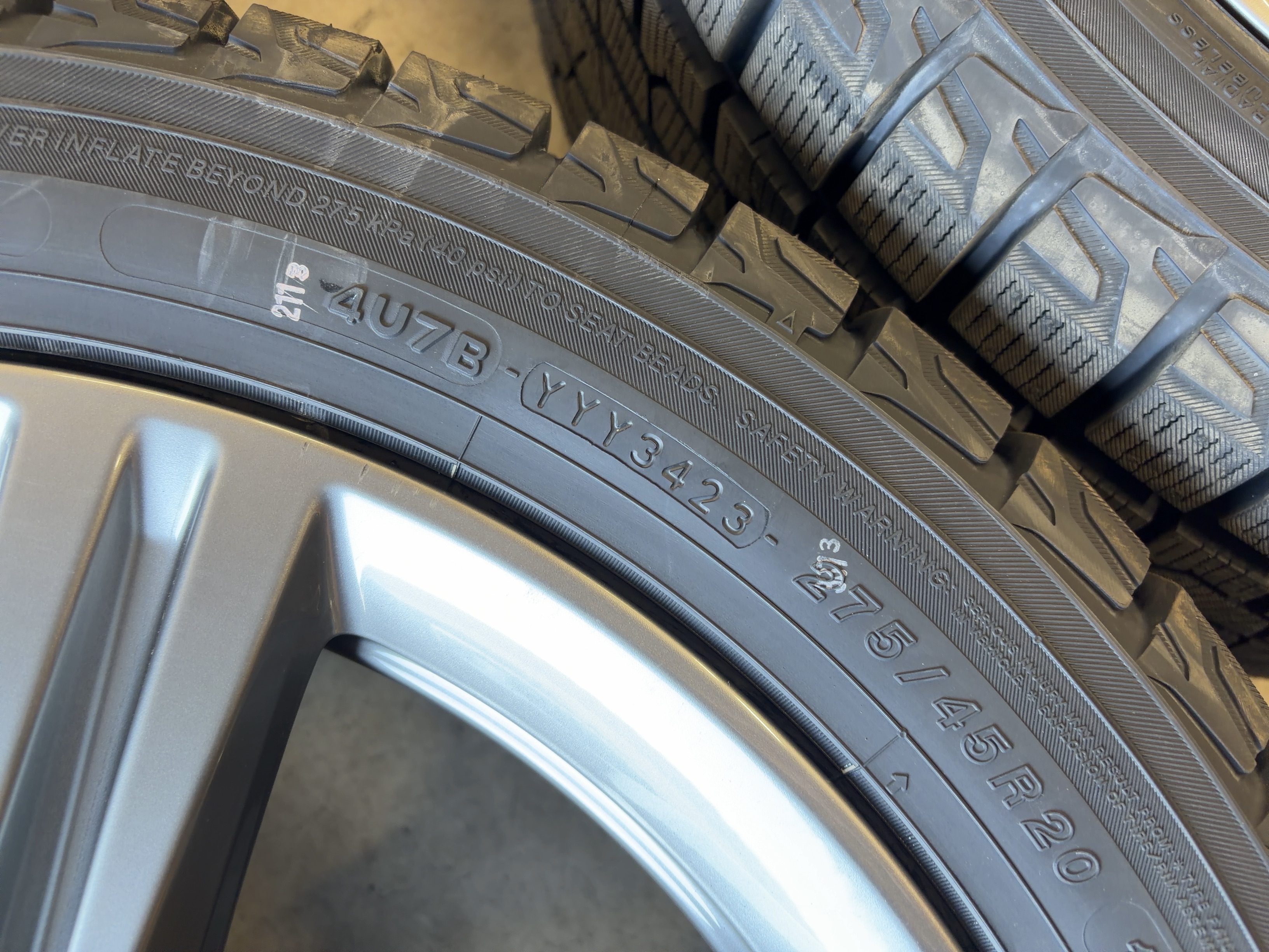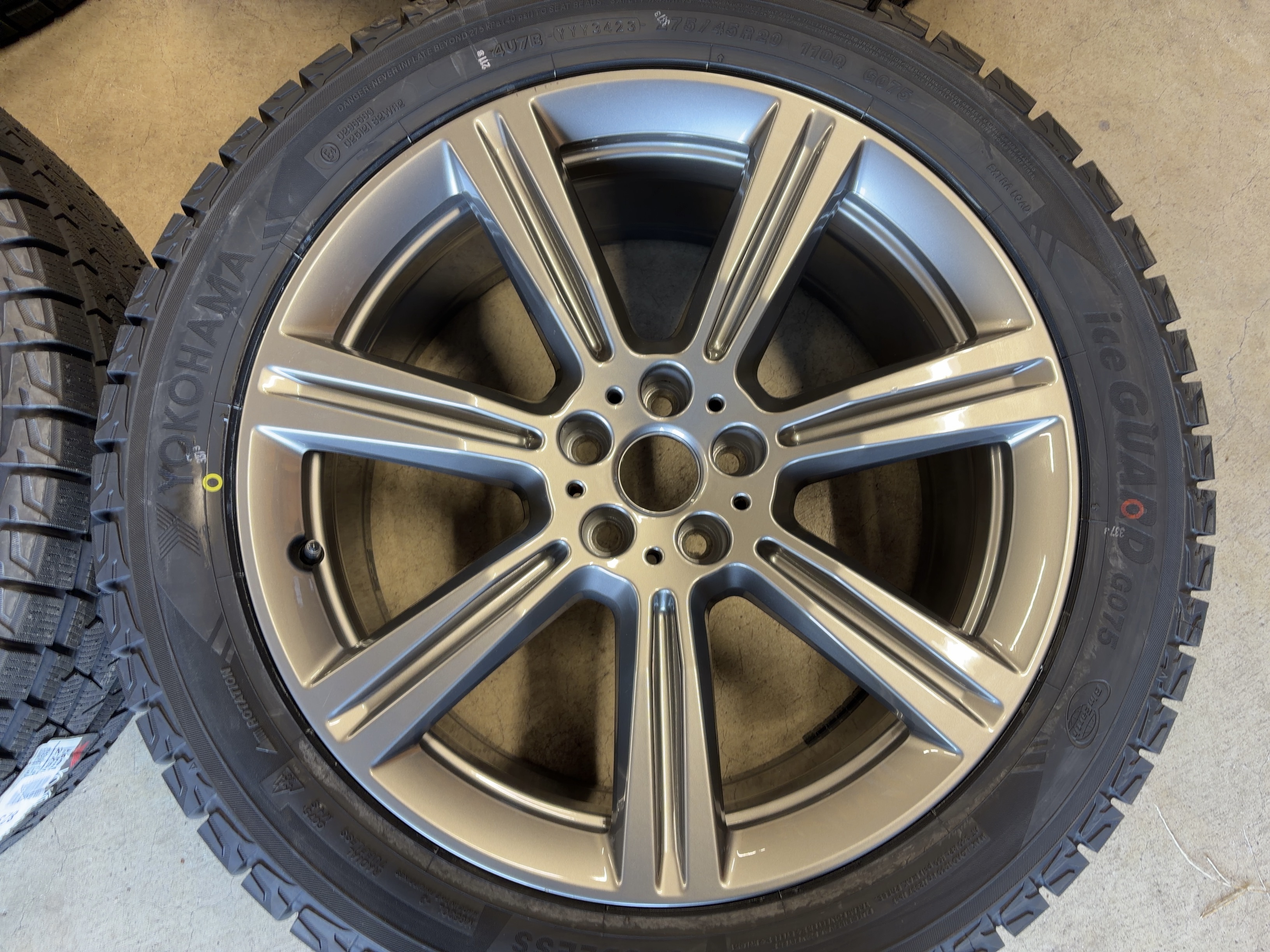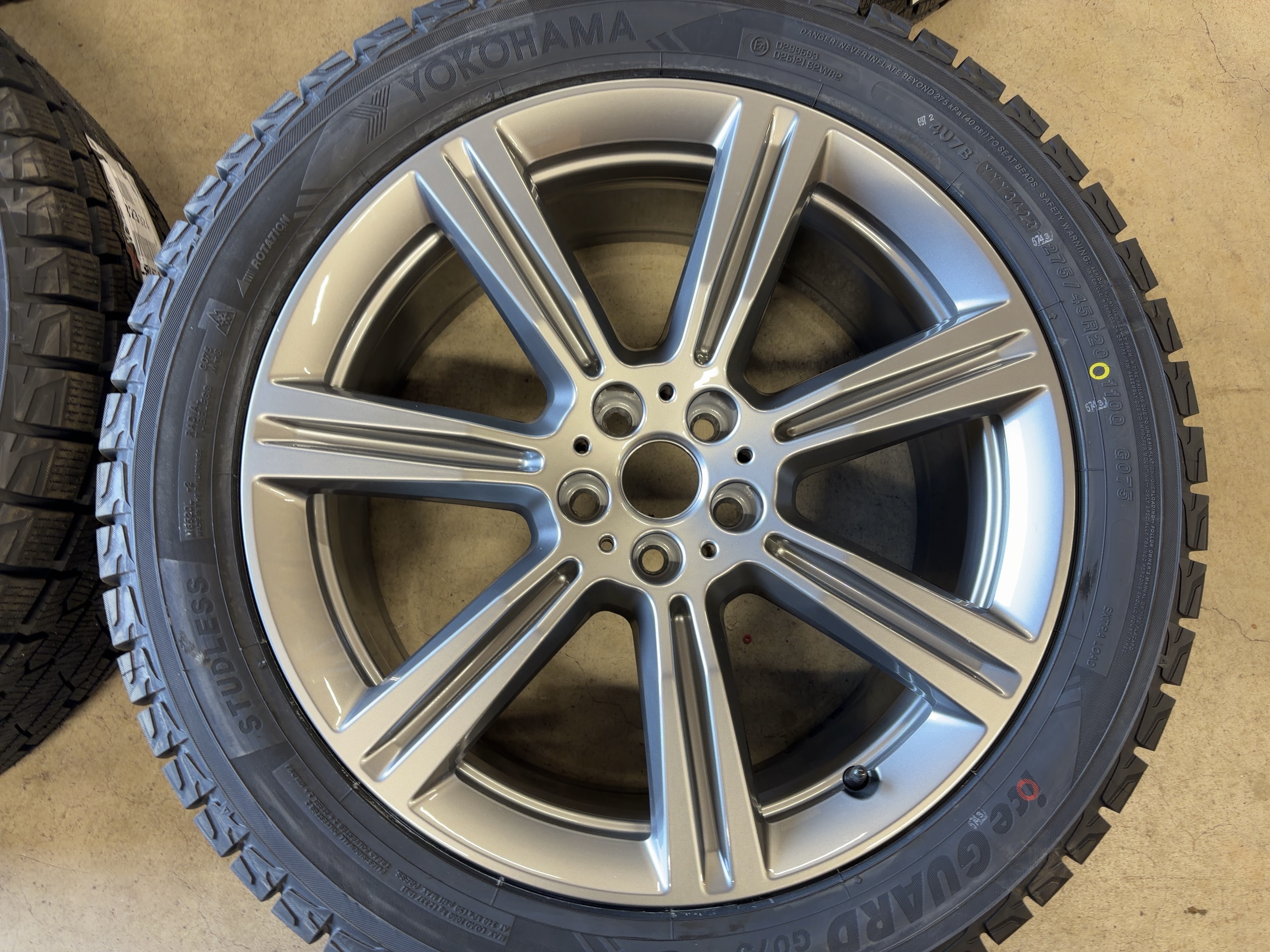 | アルミサイズ | ホイル 9J×20 オフセット+35 PCD 112 ハブ径 66.6 タイヤ ヨコハマ アイスガード G075 275/45/20 新品 2023年製 |