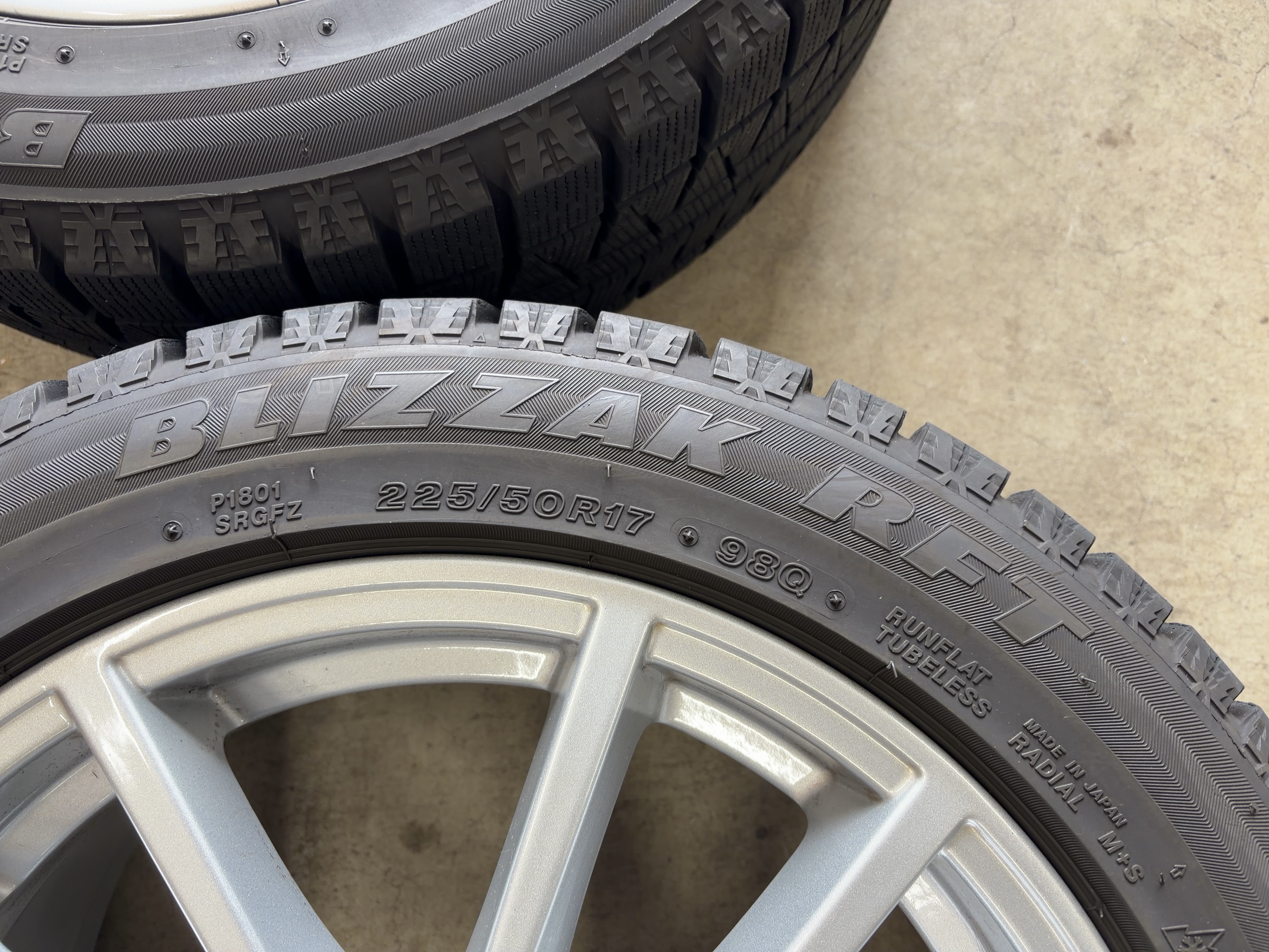 アルミサイズ ホイル 7.5J×17 オフセット+30 PCD 112 ハブ径 66.6 タイヤ BS ブリザック ランフラット 225/55/17 7部山 2021年製