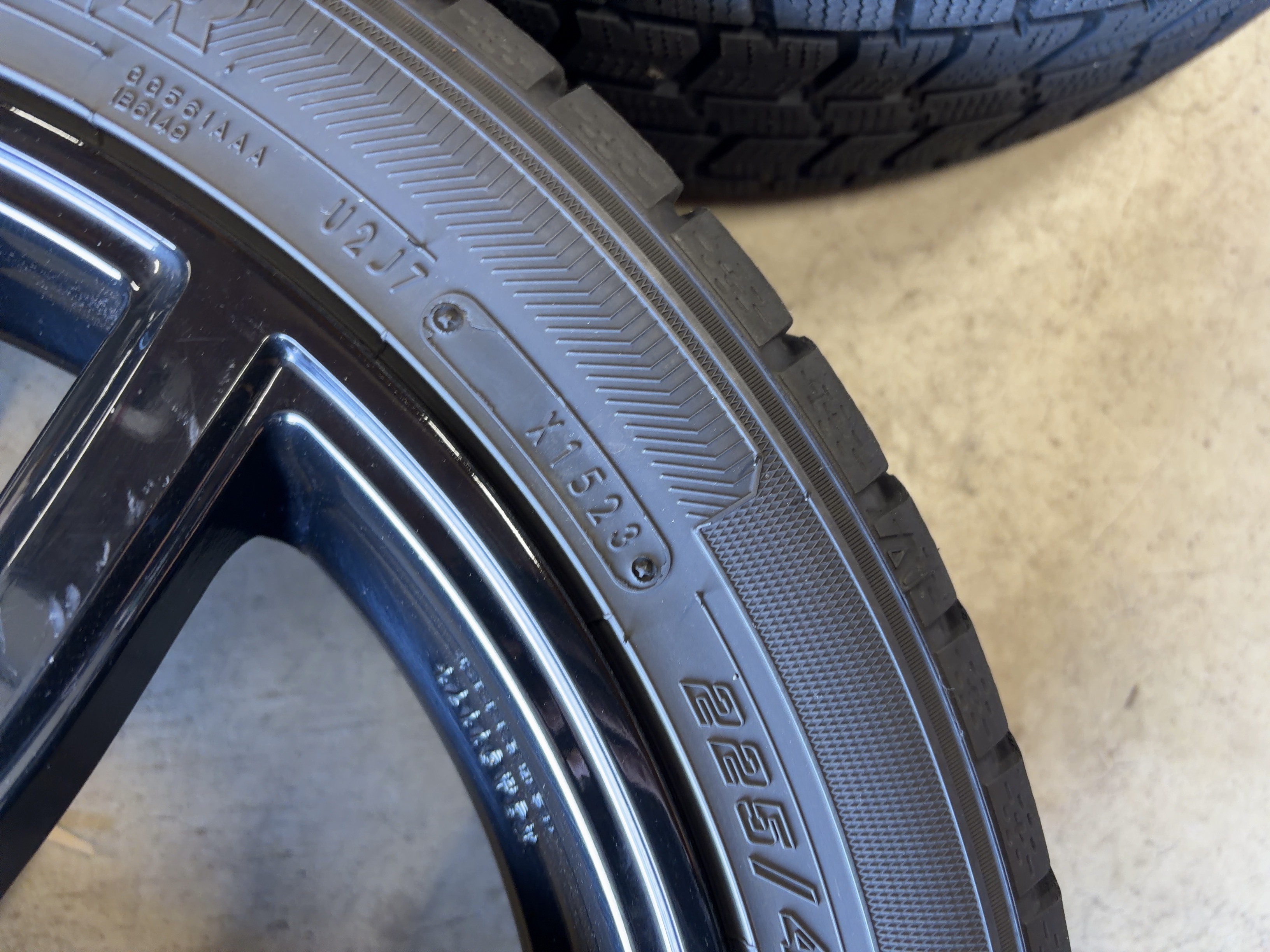 | アルミサイズ | ホイル 7.5J×18 オフセット+28 PCD 112 ハブ径 66.6 タイヤ グッドイヤー アイスナビ7 225/45/18 5部山 2023年製 |