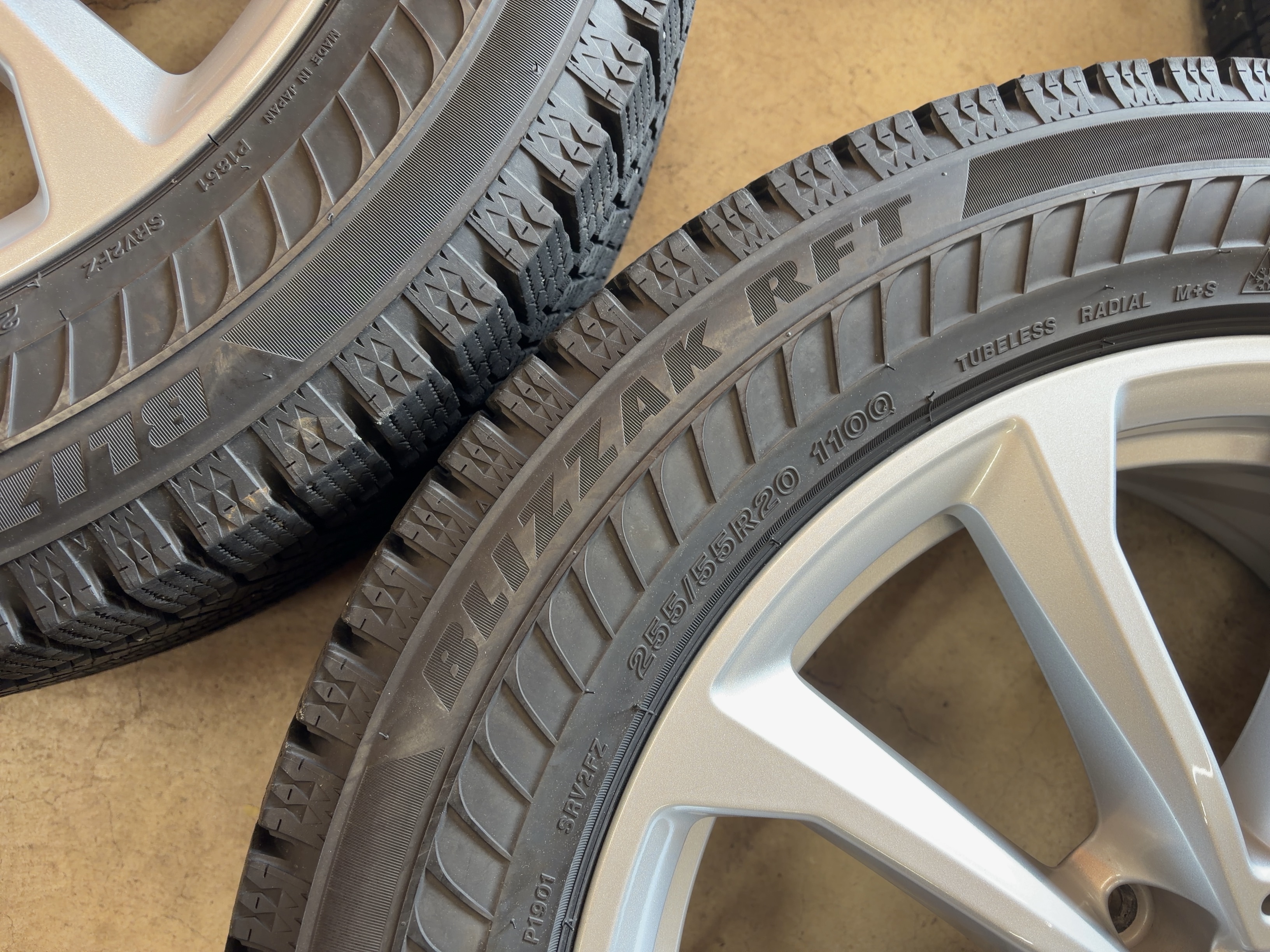 | アルミサイズ | ホイル 8.5J×20 オフセット+35 PCD 112 ハブ径 66.6 タイヤ BS ブリザック ランフラット 225/55/20 7部山 2021年製 |