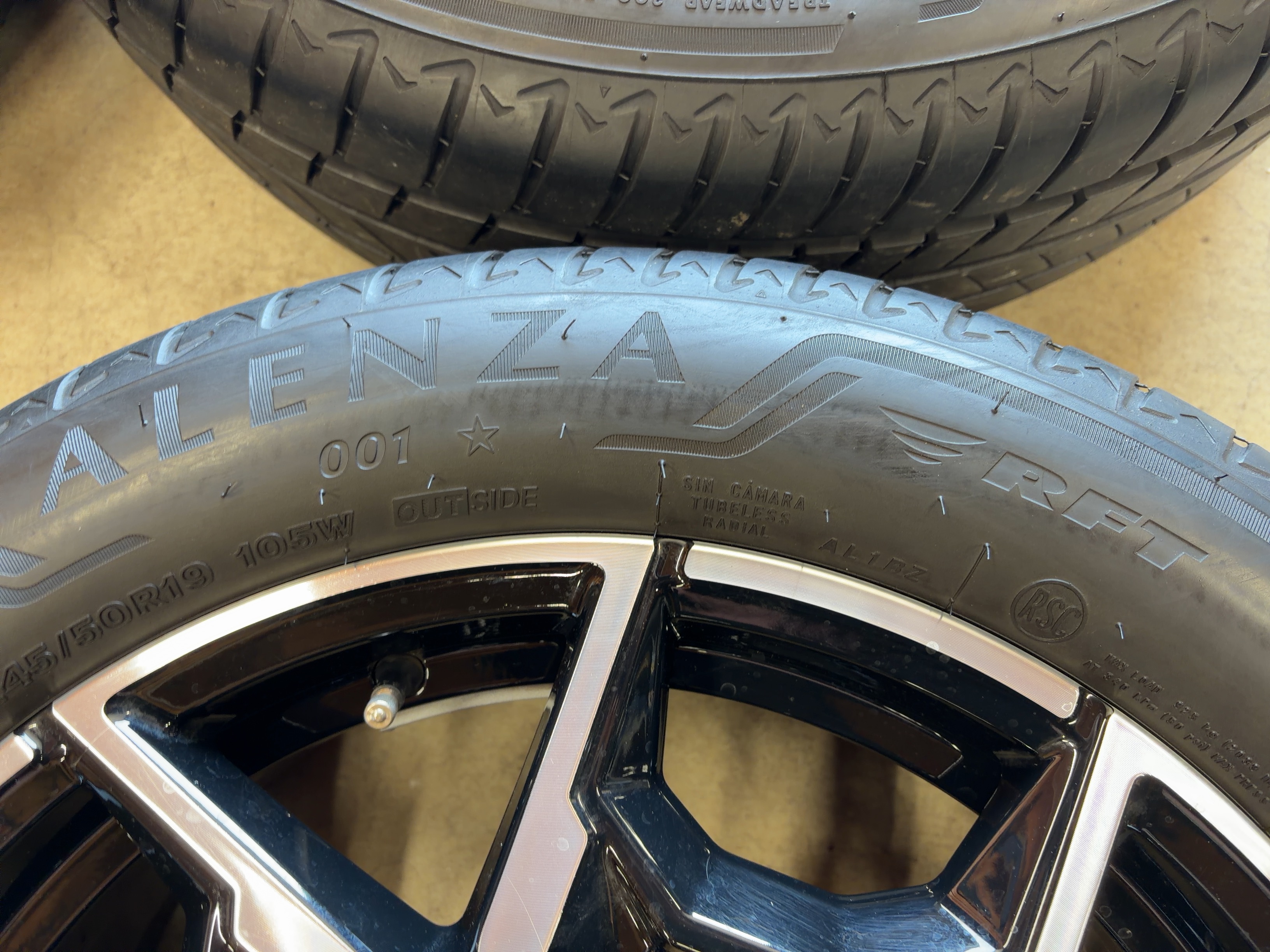 | アルミサイズ | ホイル 7.5J×19 オフセット+32 PCD 112 ハブ径 66.6 タイヤ BS アレンザ 001 ランフラット 245/50/19 8部山 2021年製 |