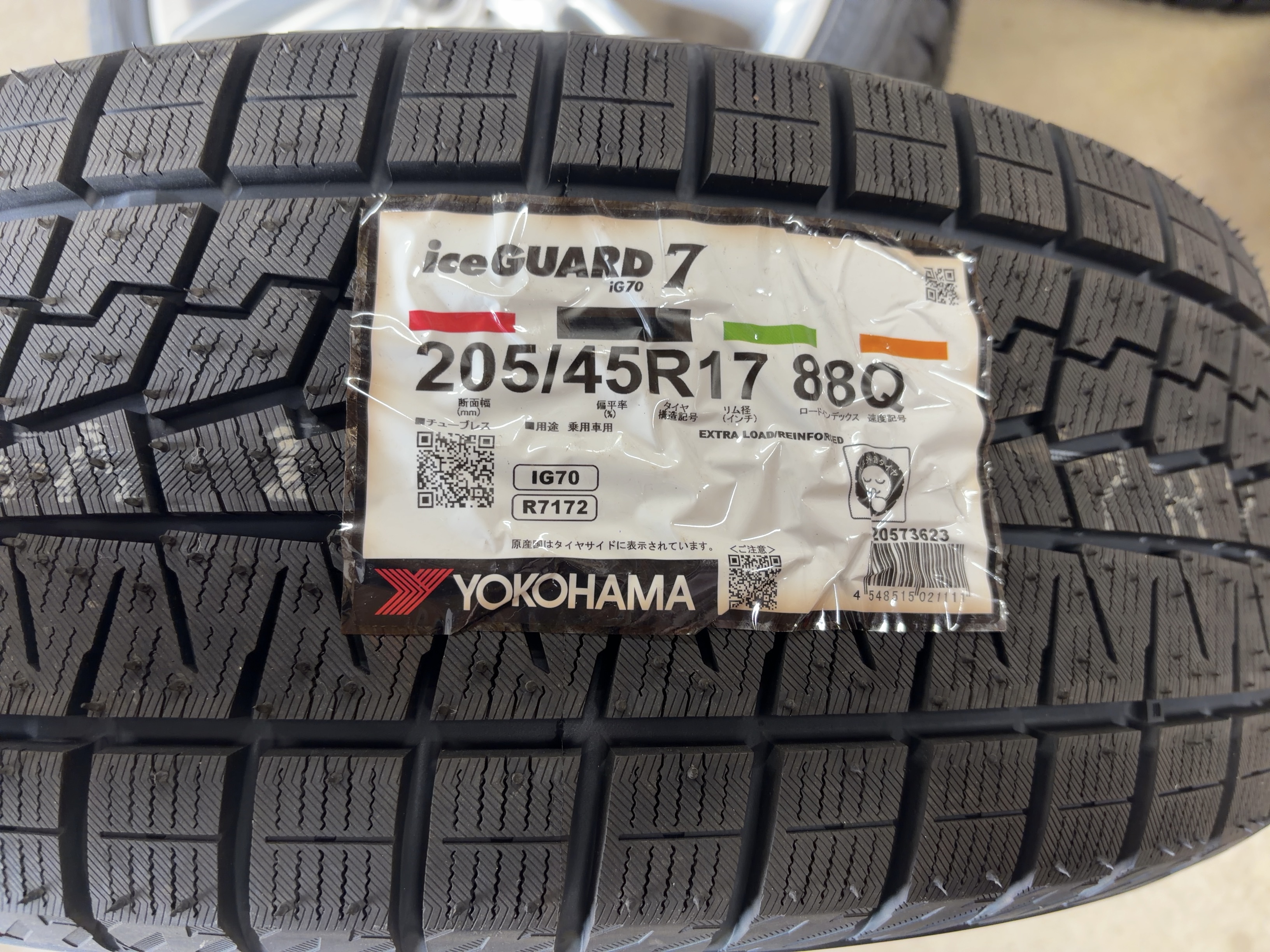 アルミサイズ ホイル 7J×17 オフセット+54 PCD 112 ハブ径 66.6 タイヤ ヨコハマ アイスガードIG70 新品 205/45/17 2023年製