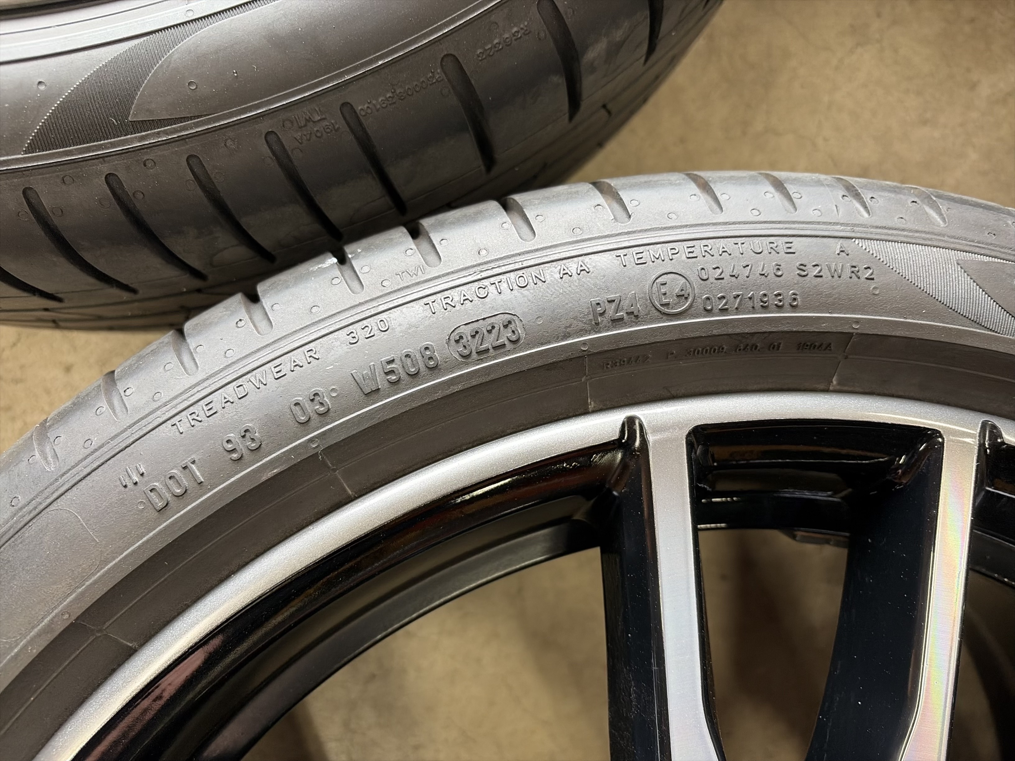 アルミサイズ ホイル 8J×19 オフセット+27 8.5J×19 オフセット+40 タイヤ ピレリ P-ZERO ランフラット 225/40/19 255/35/19 8部山前後 2023年製