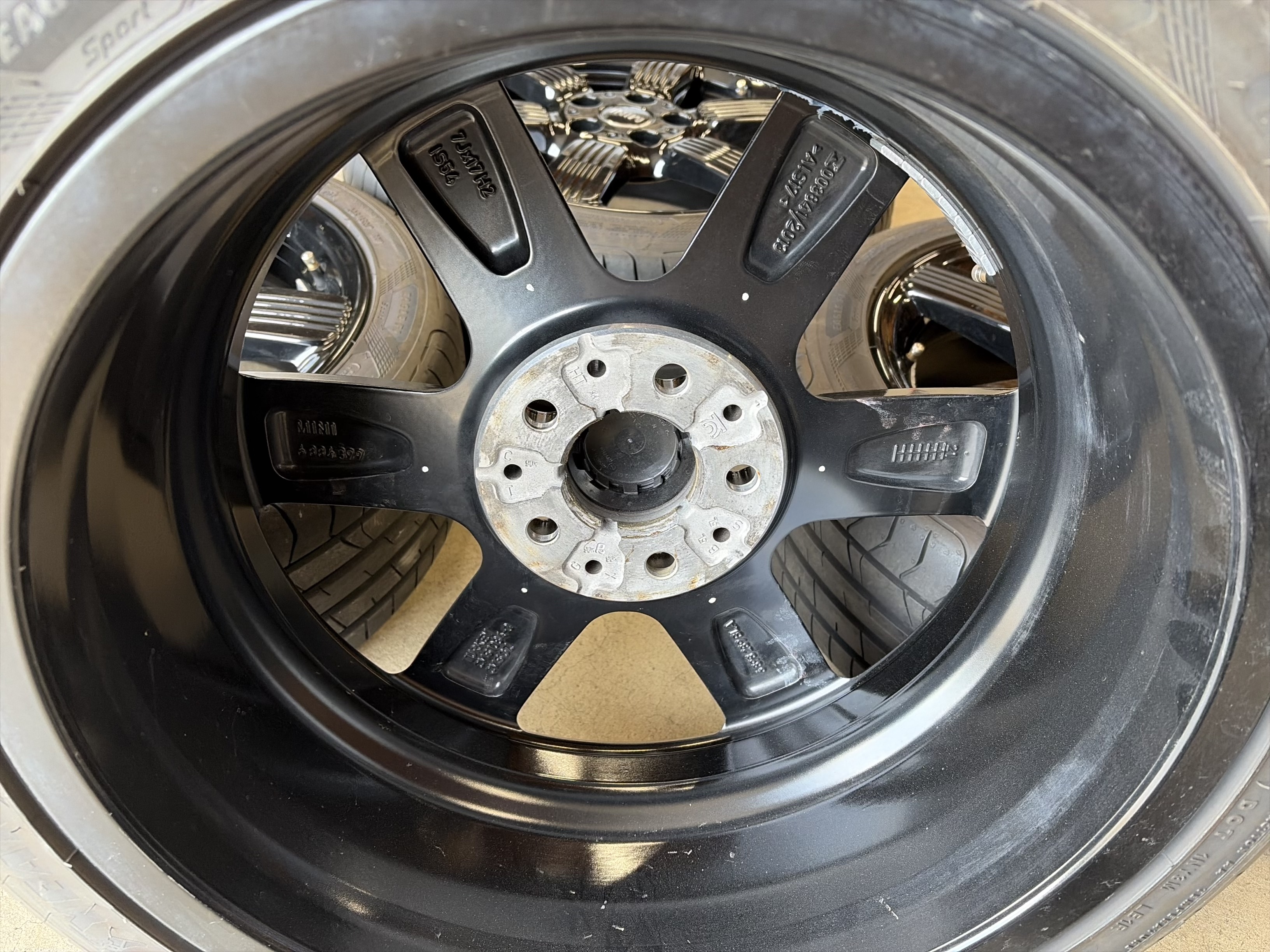 | アルミサイズ | イル 7J×17 オフセット+54 PCD 112 ハブ径 66.6 タイヤ グッドイヤー イーグルF1 205/45/17 9部山 2023年製 |