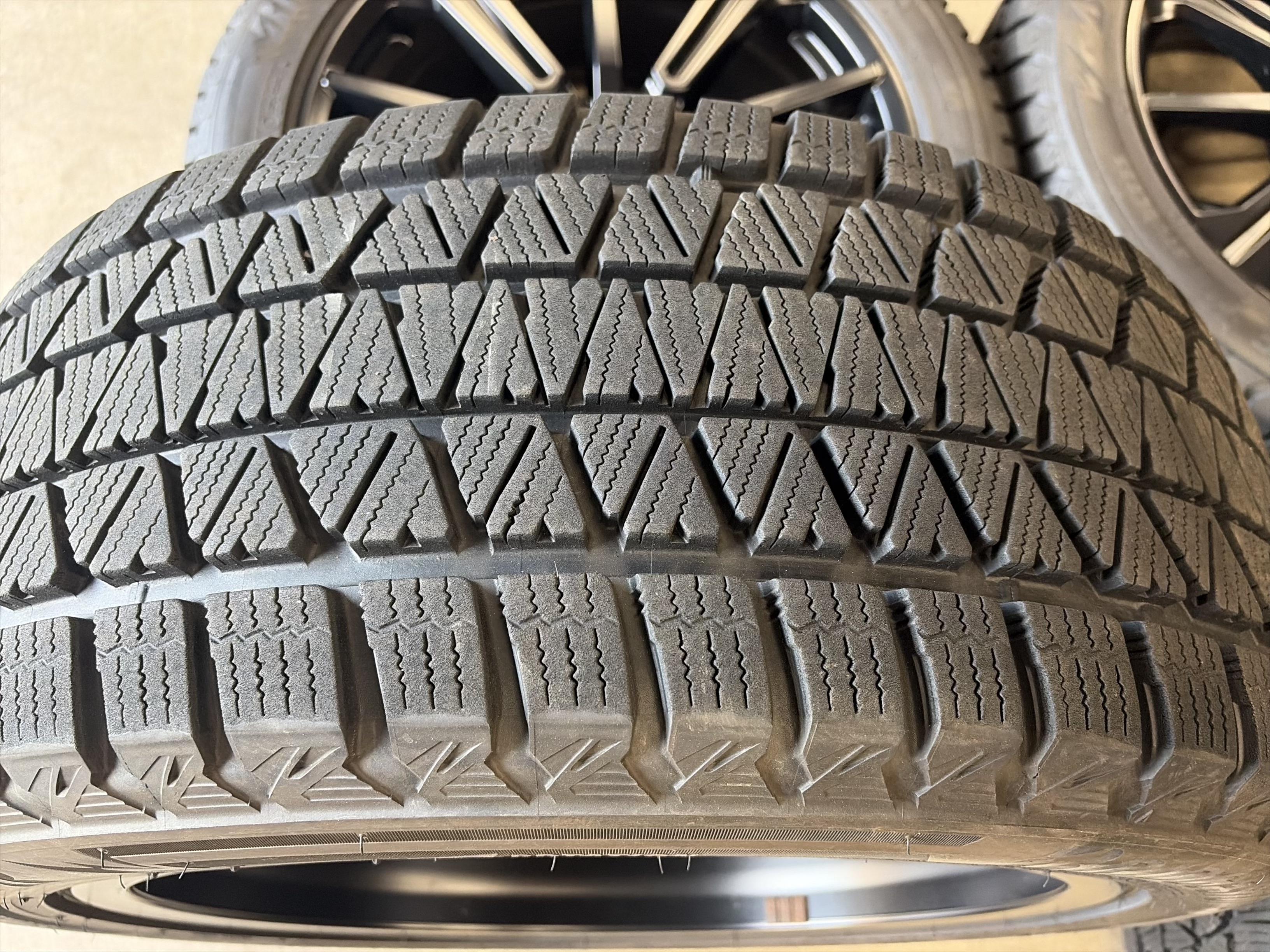 | アルミサイズ | ホイル 9J×20 オフセット+35 PCD 112 ハブ径 66.6 タイヤ BS ブリザック V3 275/45/20 9部山 2023年製 |
