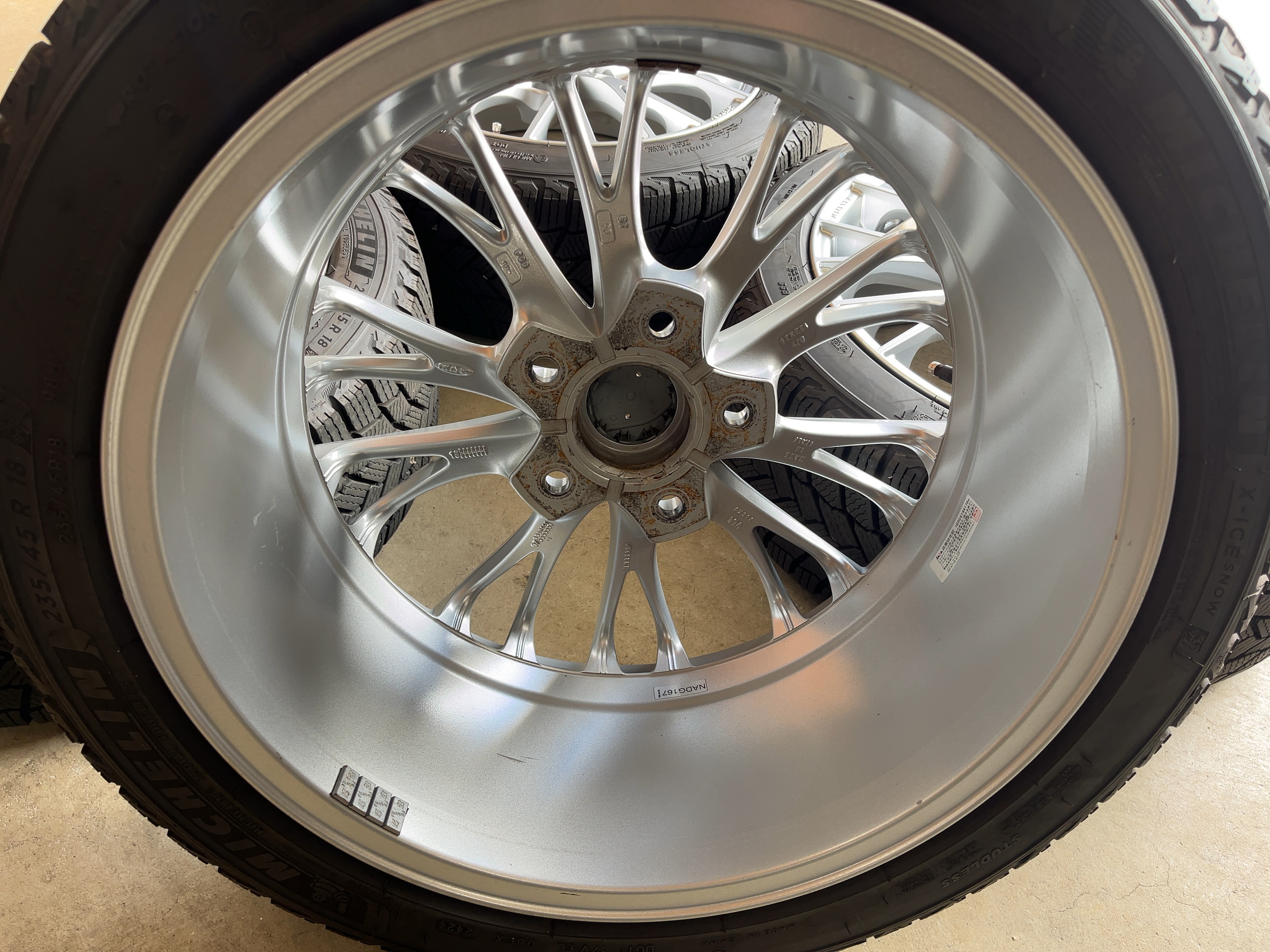| アルミサイズ | ホイル 8J×18 オフセット+50 タイヤ ミシュラン スノー 235/45/18 9部山 2024年製 |