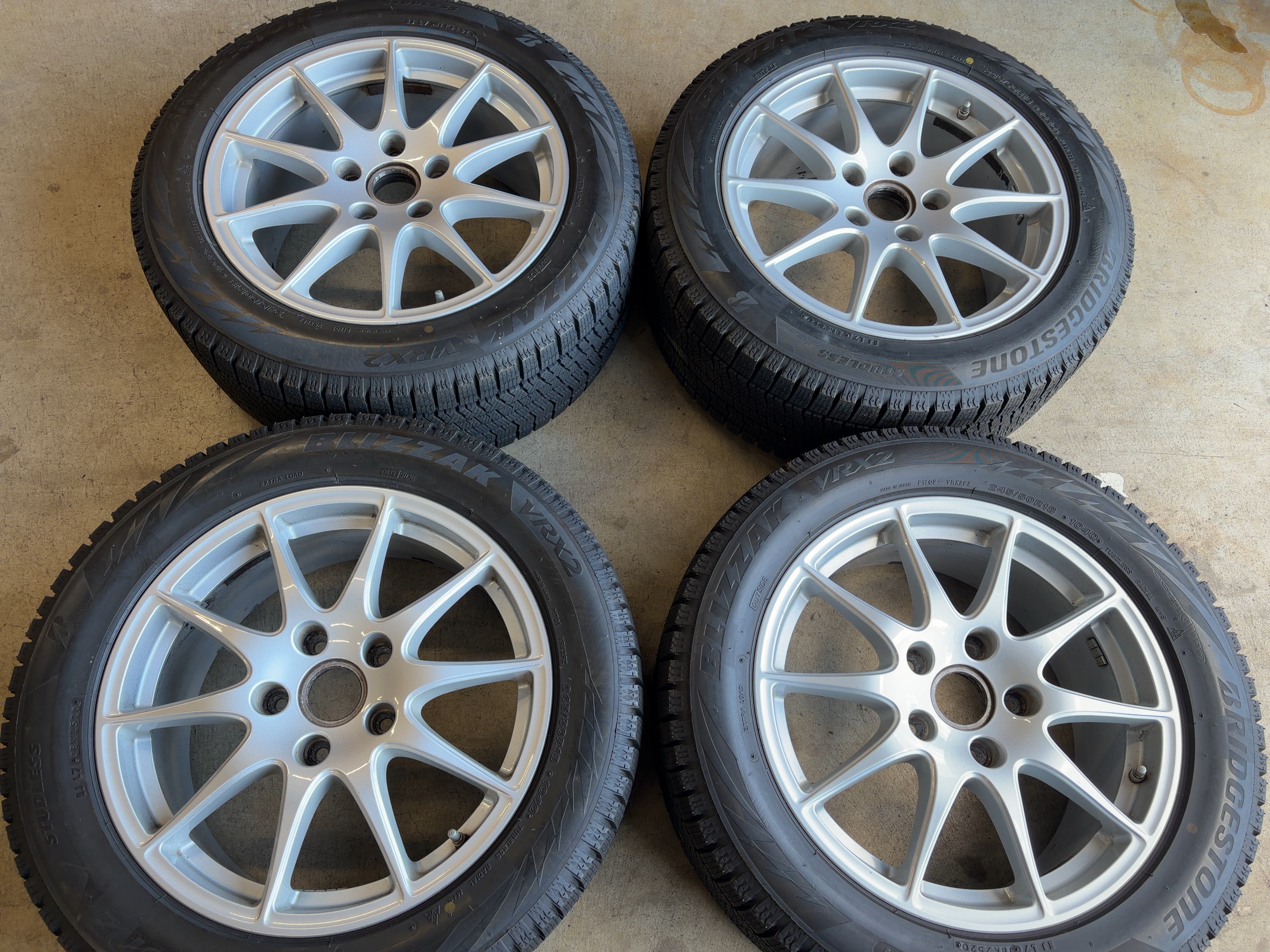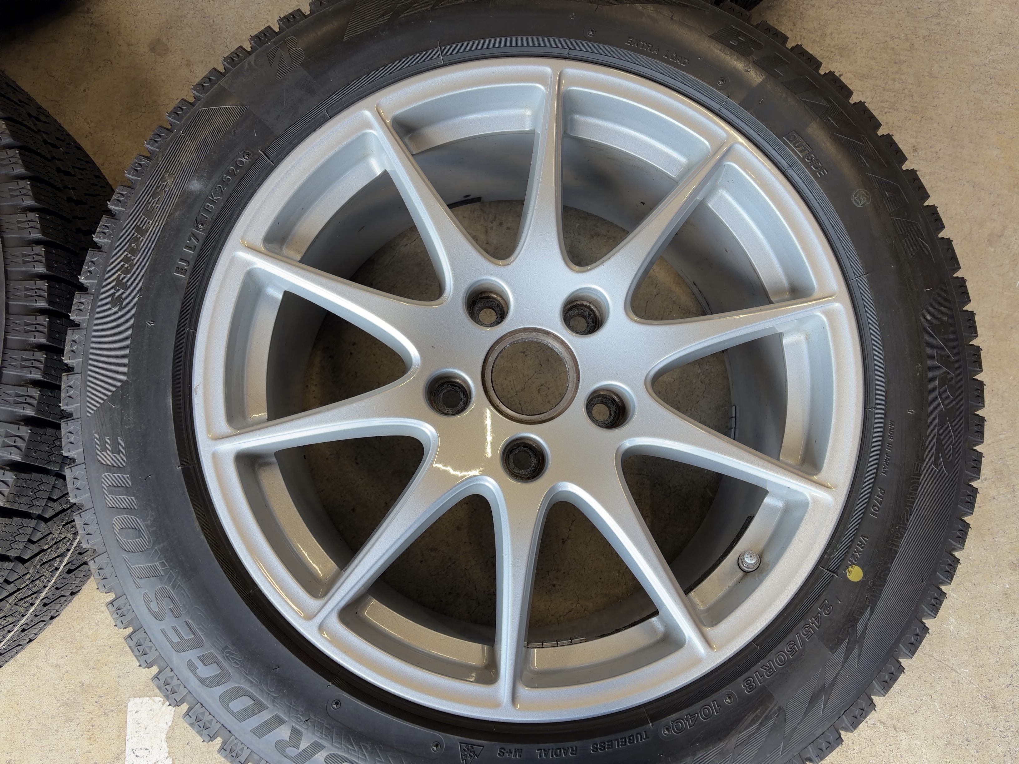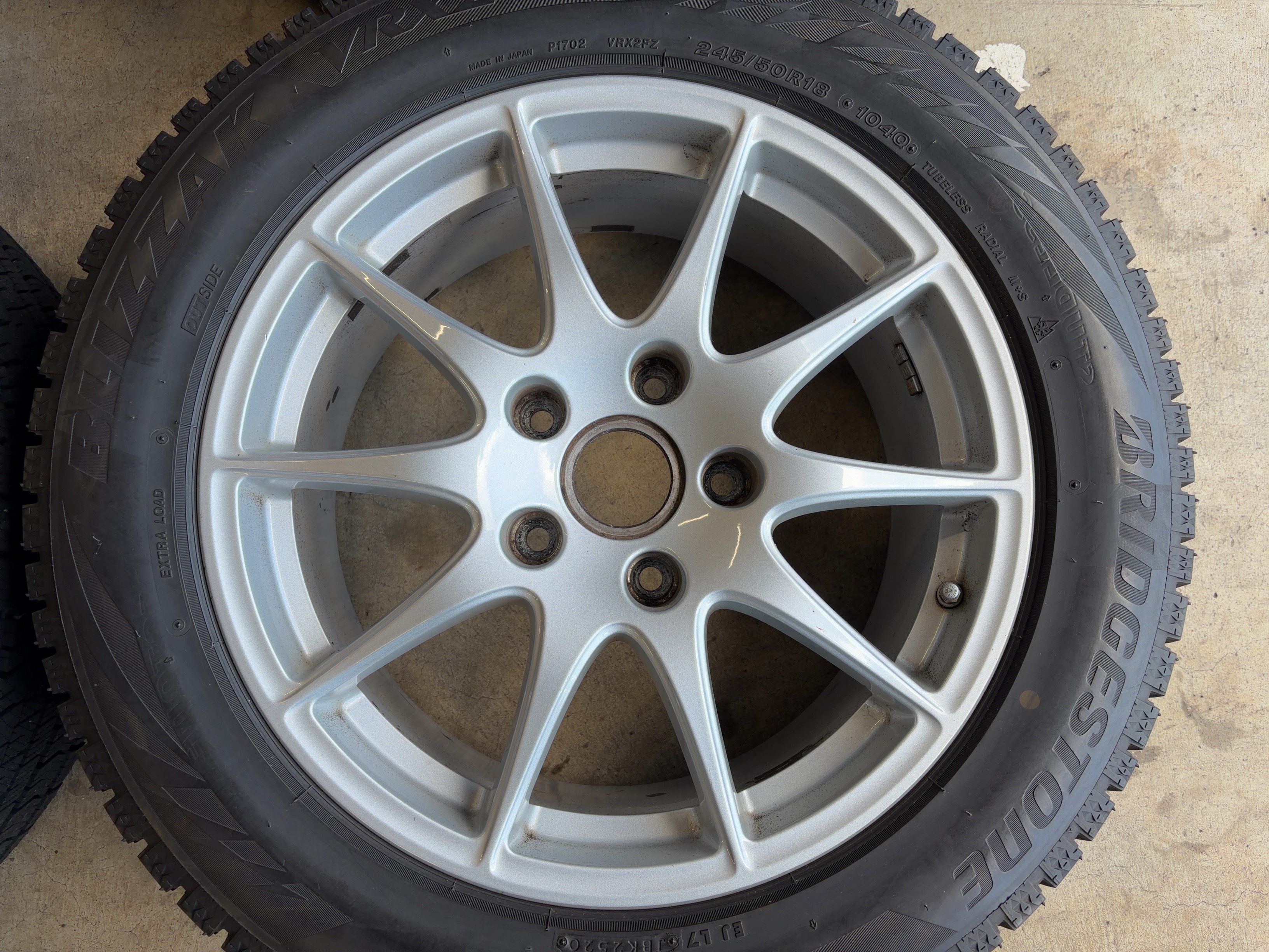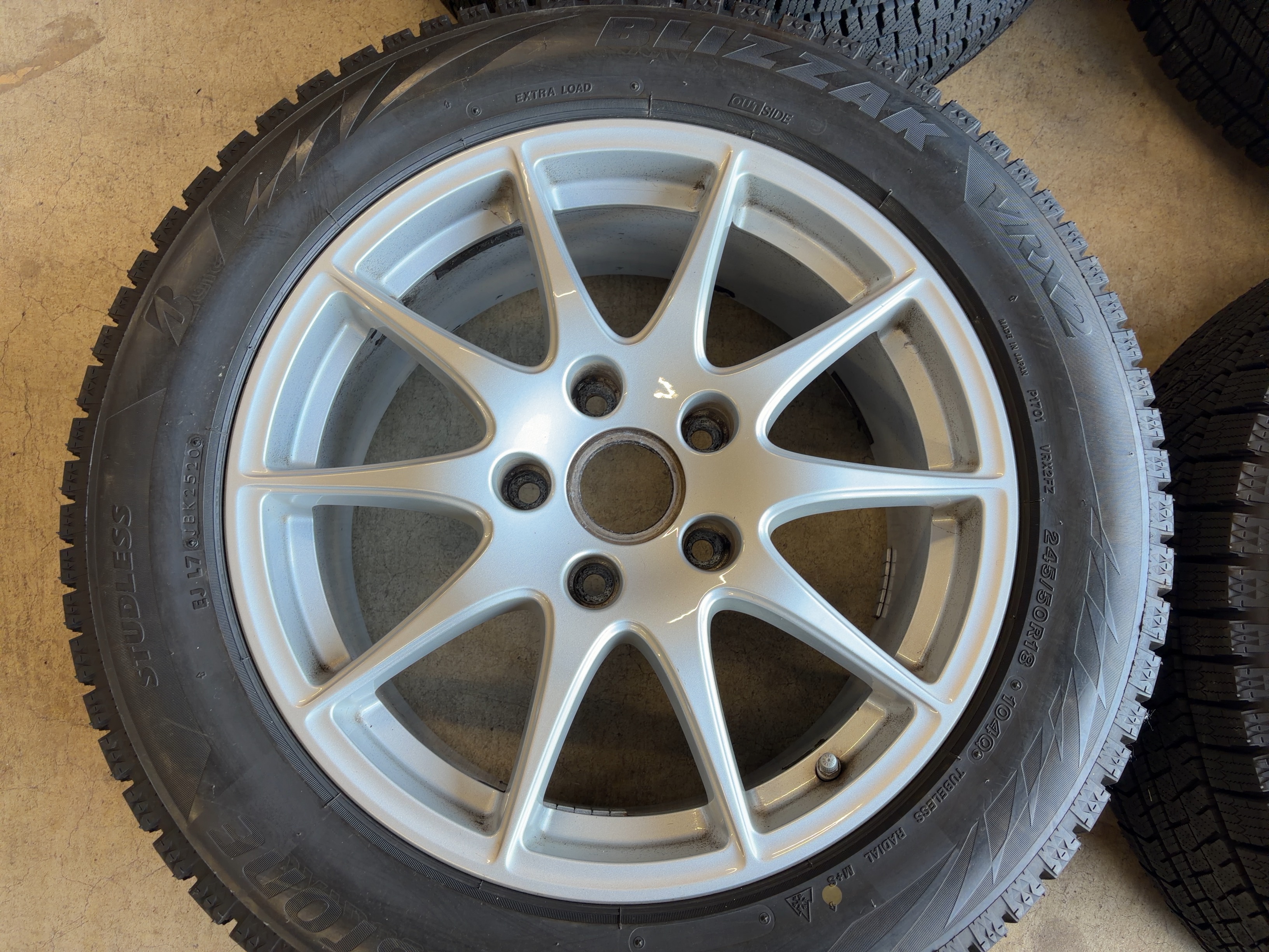 | アルミサイズ | ホイル 8J×18 オフセット+59 9J×18 オフセット+53 タイヤ BS ブリザック VRX2 245/50/18 9部山 2020年製 空気圧センサー付 |