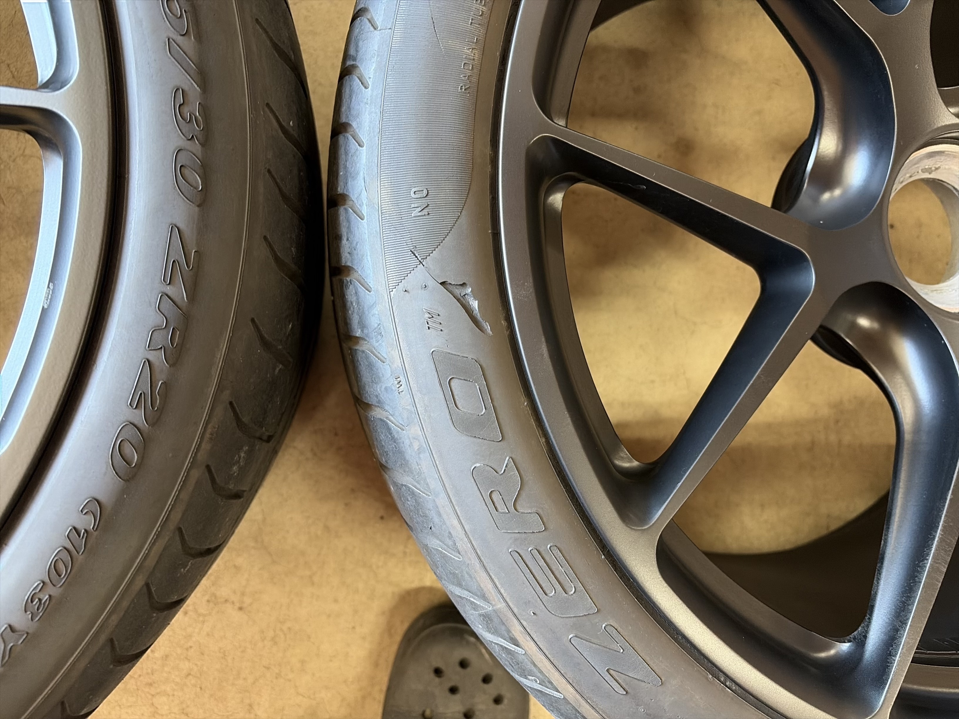 | アルミサイズ | イル 9J×20 オフセット+47 11J×20 オフセット+37 センターロック タイヤ ピレリ P-ZERO 245/35/20 315/35/20 7部山 2015年製 タイヤに画像のエグレ有り |